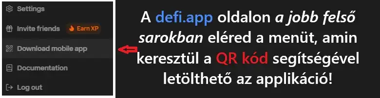 A webes felületen a defi.app oldalon ha már be vagy jelentkezve, hol találod az említett Android applikáció QR kódját❓