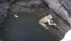 Még mindig nem tudott stabilan állni, tehát a ketrec jól funkcionált, ugyanakkor a körkörös mozgást sem hagyta abba … (ezen a ponton tűnt a gondozóknak a vélelmezett neurológiai probléma egy komoly baj forrásának, mert nem is reménykedtek benne, hogy valaha is fog tudni járni).